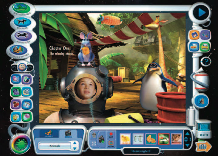 The full install takes up 2.2 GB of space. Most of this is composed of vast library resources that you can access to make your creations. You can opt for a smaller download of only 350 MB which has the guts of the application but then you must insert the DVD to be able to tap into the library files. Once it is installed the biggest problem is where to start. There is a 96 page users manual that explains in simple step by step procedures, with a lot of pictures, what you can do with Kid Pix 3D. Try the idea machine as the first place to explore. This is kind of like an electronic comic colouring book. Some of the pictures are drawn in black and white, ready for you to add some fill.